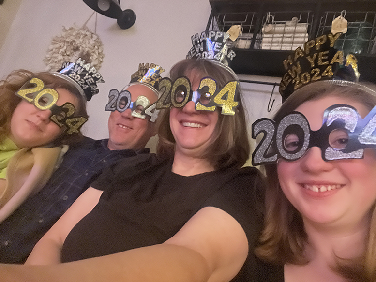 A small and simple celebration! We shared a banana split, watched the countdown, toasted with Winter Spiced Cranberry Sprite, and had our own handmade ball drop. We put on the party tiara's and 2024 glasses and the girls went out and popped some confetti poppers. We are not big on parties and contemplated celebrating early with a time zone across the pond...but we all made it to the stroke of midnight.